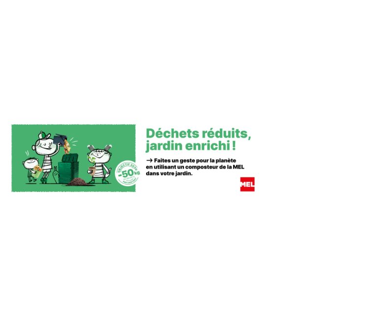 Près du tiers de nos ordures ménagères sont constitués de biodéchets, à savoir les déchets alimentaires (épluchures, restes de repas, fruits et légumes, marc de café, coquilles d'oeufs...) et les déchets de jardin (tontes, feuilles mortes, petits branchages...). Jetés dans le bac à ordures ménagères, ils seront incinérés au centre de valorisation énergique de la MEL. Or, ces biodéchets sont des ressources ! Ils peuvent être transformés en compost ou broyés pour être utilisés en paillis. La MEL vous accompagne dans cette démarche.